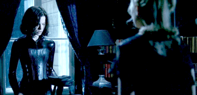 Plus tard, Erika rejoint Sélène dans sa chambre afin de lui apporter une robe de bal, mais constate que Sélène est toujours préoccupée, menant des recherches sur son ordinateur. Elle s’approche alors et découvre sur l’écran la photo de Michael Corvin, qu’elle qualifie de séduisant. Kraven interrompt la conversation en faisant irruption dans la chambre. Erika quitte les lieux pour le laisser discuter avec Sélène.